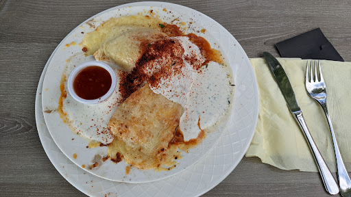 Leider war mein Gericht (Vanila Pfandl mit Hühnerbrust) ein "Totalausfall", deshalb auch nur 2 Sterne. Das Fleisch war trocken, die "Pfeffer-Rahmsauce" verdiente ihren Namen nicht, das war mit an Sicherheit grenzender Wahrscheinlichkeit eine Sauce rein aus dem Packerl oder ansonsten wirklich extrem schlecht gekocht und das "frisch geröstete Gemüse", das gut die Hälfte meines Pfandls ausmachte, war dermaßen verkocht, dass ich es locker mit dem Strohhalm hätte "essen" können - ich hab es dann übrig gelassen. Die (Mini)Kroketten waren in Ordnung, allerdings leider nicht mehr warm.