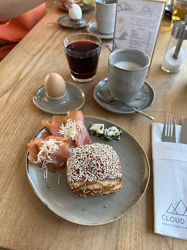 Read moreDas Frühstück im Cloud 5 ist nett, das wars aber auch schon. Es handelt sich um ein Hotelfrühstück. Zur Auswahl stehen eine nette Auswahl an Speisen, die auch von ganz guter Qualität sind (besonders sind dabei die Wachteleier und einige Sorten Käse). Ansonsten gibt es eine eher schlanke Auswahl - keine Aufstriche außer aus dem Döschen, eigentlich nur 2 Sorten Müsli,..). Für 16,90€ wäre das ja noch halbwegs ok. Allerdings, auf der Website nicht zu sehen, sondern nur auf der Karte im Restaurant, kostet das Frühstück 19,90€ am Samstag und Sonntag. Wir waren vier Leute plus Kleinkind unter einem Jahr und haben satte 87,90€ bezahlt. Dafür sollten zumindest Kaffebedienung am Tisch und einige warme Speisen angeboten werden. Auch der Ausblick ist für uns die hohen Preise nicht wert, da er zwar schön ist, die Plätze mit dem schönen Ausblick sind aber natürlich...
