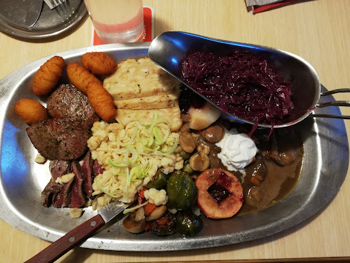 Read moreWir kehrten nach einer Wanderung ein, nachdem wir von der Werbung mit den Wildwochen angezogen wurden. Nach einer freundlichen Begrüßung bekamen wir die Speisekarte. Positiv überrascht waren wir vom Cordon Bleu, welches selbst zusammengestellt werden kann. Nicht nur die diesbezüglichen Wahlmöglichkeiten waren vorzüglich, sondern auch das Essen. Der bestellte Wildteller war für eine hungrige Person mehr als ausreichend, möglicherweise wären zwei Personen davon satt geworden. Und das zu einem unschlagbarem Preis. Die Freundlichkeit und der Humor von den Besitzern trägt zur Gemütlichkeit bei. Wir kommen...