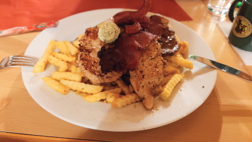 Bij binnenkomst zat de bediening aan de bar met de benen omhoog.... We hadden om 18:00 uur gereserveerd voor 10 volwassenen en 2 kinderen. De dame die de bestelling opnam was aardig en behulpzaam de vrouw die serveerde was van het " ja, aanpakken en doorgeven en snel, want de keuken gaat om 19:00 dicht" het zelfde verhaal met het afruimen en desert. De schnitzels waren droog, de tiroler grostl ook en de Swiebeln rostbraten me kasespatzel was echt heel erg zout. Niet echt een welkom gevoel en ook nog eens teleurgesteld over het eten dus..... We zijn 41 jaar geleden voor het eerst in Haldensee op de camping terecht gekomen en hebben daar jarenlang een jaarplaats gehad. Tauscher had toen nog een supermarkt annex sportwinkel waar wij ook altijd onze boodschappen deden en onze ski uitrusting huurden. Helaas is de service van toen niet meegegaan naar het restaurant....... Jammer heer Tauscher, desalniettemin groeten de...