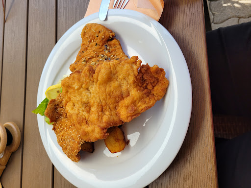 Nun zum Essen: es gab eine super gute Auswahl. Wir hatten das Wiener Schnitzel, die Hausplatte, das Kindermenu Binde Maja und Buntes Gemüse mit Gebackenem Käse.