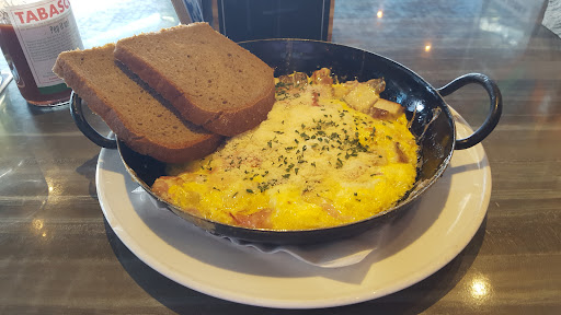 The staff is very friendly and helpful, mostly students themselves as many of the guests. I got my bacon and eggs with fresh onions and Greek feta cheese.