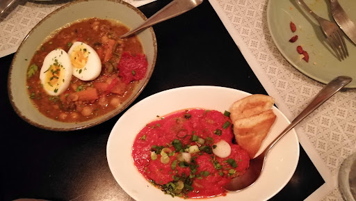 After many attempts without reserving the table, in a cloudy and fresh evening we have had luck and we could eat in this restaurant. There are few tables outside along the street but we did stay inside. The atmosphere is nice and the local well furnished. In four people we did order a couple of cold and warm appetizers and two main dishes (Leblebi, Rindfleischbällchen). Sharing the food we did taste a little bit of everything. Among the appetizers I liked much the "Fava". The combination of caramelized onions and the broad bean puree was amazing. The service was quick and the lady very friendly and easy going. I saw there are some Greek wines with affordable prices but we did drink just water. Next time I will taste the wine. 15-20 € for a lunch / dinner. One gets value for money in this restaurant. P. S. I would have given five stars if the meat ball would have...