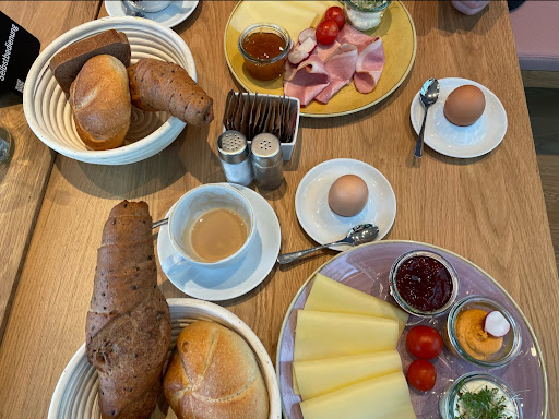 Getränke und Essen: Es geht hier um einen Kaffee, eine Schokolade, ein Crossaint, ein Kornspitz und zwei Kraftweckerl. Ich mache es kurz: Der Kaffee war bestenfalls lauwarm, die Schokolade hat nicht einmal nach Schokolade geschmeckt. Das Crossaint war trocken, Kornspitz und Kraftweckerl haben schlicht nach nichts geschmeckt.