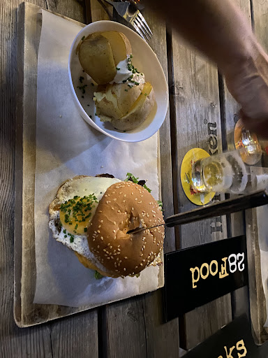 We had some beers. Weissbier for me, pale ale for my girl. On the food side we wanted some fries or chips, we didn't see that on the menu so we stuck with our beers. They have burgers, nachos and stuff but we did not try them.