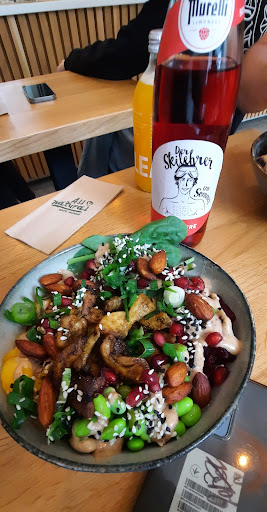 Liked that place which is quite interesting and tasty. For me it was really unusual combination in my bowl: mango, pomegranate, almonds, beans and beets + chicken and rice - and it was tasty. Portions are big enough (even a small one) and a good price 10,90 or 13,90 eur for small or big bowl. Seats inside looks cozy or you can go to outside table at a nice side street with old...