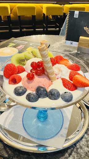 What truly sets this place apart, though, is the exceptional service – especially from Nimi, one of the standout staff members. Fluent in Albanian, English, and German, Nimi is not only professional and friendly but also incredibly attentive. He takes the time to explain every item on the menu in detail, ensuring that each guest feels informed and welcomed. Whether you're curious about a specialty dessert or need help choosing the perfect coffee blend, Nimi goes above and beyond to make your visit special.