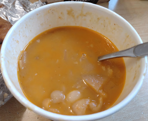 On the receipt it was written: 5.5 € for čevapčići + 3.5 € for french fries and he said half bun is 0.5 € which wasn't stated on the bill.