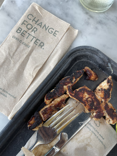 Meine Mutter waren am 17.1. spontan und zum erstenmal in diesem Lokal essen. ich muss zugeben, daß ich beim ersten Mal bestellen dezent planlos war, da ich weder über dem Ablauf im Lokal infomiert war, noch die Speisekarte an der Wand ohne Brille gut lesen konnte. Bestellte deswegen einfach den vom Namen verheissungsvollsten Salat: Surf and Turf und einen Erdbeer Minz Smoothie. Man zahlt dann sofort an der Kassa und bekommt einen Funkempfänger den man zu seinem Tisch mitnimmt. Besteck und Tablett liegt auch bei der Kassa auf... Dann wartet man bis der Funkempfänger grün blinkt und holt sich das Essen von der Schauküche. So viel zum Ablauf. Der Salat war mit knapp 15 Euro nicht ganz auf der kostenparenden Seite, jedoch wird man mit einem perfekt abgemachten und optisch sehr schön aufbereiteten Salat belohnt. Wirklich sehr tadellos und geschmacklich absolut "gustig". Der Smoothie auch sehr köstlich und ebenfalls mit fast 5 Euro etwas über Niveau. Das Lokal selbst wirkt sehr sauber und aufgeräumt. Das gesamte Konzept wirkt einfach sehr frisch. So frisch wie die Speisen schmecken! Für mich und vorallem meine Mutter ist es klar: Im Murpark ist der Besuch von D+D ein zukünftiger Fixtermin! Heisser Tipp: sich den Folder mit dem Speisenangebot einstecken, damit man beim nächsten Mal schon genau weiß was...