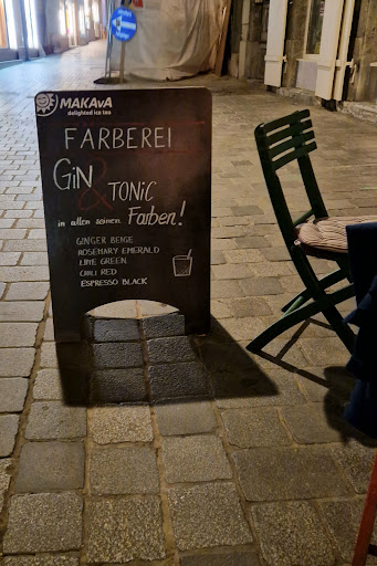 Read moreMir hat der Gin dieses Mal nicht besonders geschmeckt. Ich habe mir von der Beschreibung in der Karte (Gin mit Tonic und Ingwer) auch mehr erwartet gehabt. Es wurde ein klassischer Gin Tonic mit einem Stück Ingwer drin serviert. Nach Ingwer schmeckte das Getränk dann klarerweise nicht. Da hätte ich mir mehr "Pepp" und Geschmack erwartet. Bedienung war gut, in dieser Gasse zu sitzen ist immer sehr nett,...