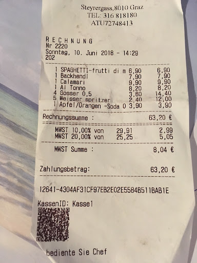 Read moreSehr nettes, gemütliches Lokal mit sehr ruhigem, schönem Gastgarten. Wir hatten für Sonntag Mittag einen Tisch im Gastgarten reserviert. Eine sehr freundliche Dame hat uns zu unserem Tisch begleitet und uns die Speisekarten gereicht und uns auf die Tagesempfehlungen (Spaghetti mit Meeresfrüchten, gegrillte Calamari, Backhendl auf Blattsalaten und Grillkotelette) hingewiesen. Drei von den Speisen haben wir direkt bestellt und eine Thunfisch-Pizza dazu. Es hat alles wunderbar geschmeckt, das Kernöl-Dressing zum Salat war ein Traum, ebenso das frisch zubereitete Backhendl. Die gegrillten Calamari waren sehr zart, Beilagen konnten wir aussuchen Gemüse und Erdäpfel oder Gemüse und frisches Pizzabrot, welches wir wählten. Die Spaghetti frutti di mare waren auch sehr schmackhaft. Die Pizza war gleichmäßig belegt und gebacken und geschmacklich ein Traum. Nun das Beste zum Schluss: Die Preise!!! Einfach wahnsinnig günstig und für die gebotene hohe Qualität einfach der Wahnsinn!! Wir haben schon wieder einen Tisch reserviert und kommen...