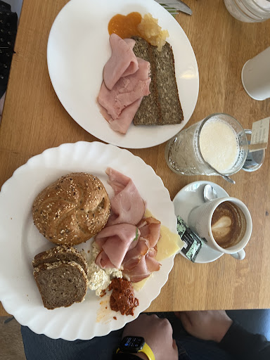 Read moreWir waren zum Brunchen hier. Das Personal ist sehr nett und um einen bemüht. Die Auswahl am Buffet ist super, auch vieles scheint selbst gemacht. Es gibt glutenfreies Brot und selbst die verschiedenen Kuchen Würfel waren glutenfrei. Der Preis ist etwas gehoben, für die Auswahl an sich trotzdem fair… ABER.. Ich muss es leider leider erwähnen, dass ich als ich mich zu den Tellern stellte angst vor Kontamintation hatte.. Der Tellerstappel war leider absolut nicht sauber, was mehrere Leute bemerkten. Die Teller sahen aus, wie wenn sie erst in die Küche zurück gehen und ich hab mich mehrfach umgesehen (sowie auch mein Partner) ob noch irgendwo anders Teller stehen, bevor wir eines nahmen. Ich hab drüber gewischt, bevor ich etwas drauf gab. Für mich als Zöli ein absolutes Nogo.. Bitte verbessern, wir würden gerne wieder kommen. Ansonsten war die Atmosphäre und alles gut. Wir haben auch noch Smoothies gekauft und mitgenommen, diese sind auch empfehlenswert. Ebenfalls schmeckt der Kaffee und weiße...
