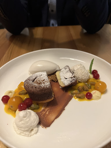 Read moreI got taken here for my birthday (I’m vegetarian) and it was one of the best veggie dishes I even had in a higher end restaurant! I had the baked risotto with tofu and pumpkin. We have been to quite a few higher end restaurants and unfortunately most chefs are not able to put together a well rounded, tasty as well as satisfying vegetarian main dish. So I was pleasantly surprised! I love that they included the tofu as a protein because a veggie protein source is usually lacking from other veggie restaurant meals. The waiters were very friendly and they knew the menu and wine offerings inside out. We were also offered a starter on the house which I really enjoyed. Again, they had a yummy veggie option! The only thing I can say that I didn’t like so much is the intense sharp light lamp directly over our table but we found a way of dimming it down which made the atmosphere a bit cozier. Also the dessert wasn’t really good, it was quite dry, tiny and not chocolatey at all (the chocolate tart). But the rest of the...