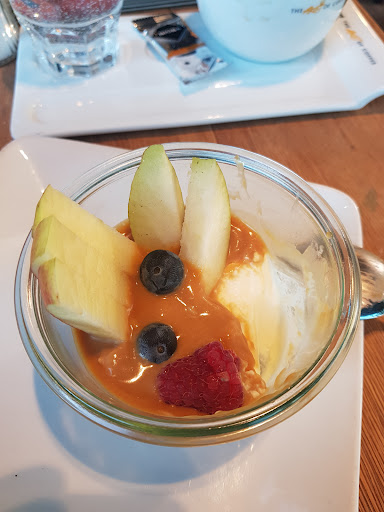 Read moreVom Speisen- und GetrĂ€nkeangebot war ich positiv ĂŒberrascht, eine solide Auswahl auch fĂŒr Veganer. Und FrĂŒhstĂŒck wie Avocado-Toast, Bagels kann man ganzen Tag bestellen. Ich habe den veganen Burger mit Beyond Meat-Patty gegessen, da ich Beyond Meat sehr gerne mag. Leider war der Burger sehr kĂŒhl, das Patty fast kalt und nicht ordentlich durchgebraten, worunter der Geschmack sehr gelitten hat. Zudem waren im Brötchen leider viele Oliven und die mag ich absolut nicht. Hab eigentlich extra nach einem Gericht ohne Oliven gesucht. Die Wedges waren recht gut und schön heiĂ, der Tomatendip ganz ok. Das Tiramisu war sehr flĂŒssig und hatte nur eine Schicht Biskotten, die vom Kaffee, der herumgeschwommen ist, komplett aufgeweicht waren, breiartig. Ich mag Tiramisu in etwas festerer, kompakterer Konsistenz wesentlich lieber. Der "White Angel"-Tee schmeckte nicht so lieblich, wie ich mir das bei einem aromatisierten weiĂen Tee mit so vielversprechendem Namen erwartet hĂ€tte. Meiner Meinung nach zu viele verschiedene Aromen, die sich nicht ergĂ€nzt, sondern gestört haben. Ich habe extrem lang darauf gewartet, zahlen zu können. Die Dame war sehr beschĂ€ftigt und ist stĂ€ndig gelaufen, aber nie in mein Eck. Direkt hinter mich hat sich ein junges PĂ€rchen mit Kleinkind gesetzt, das diesem stĂ€ndig, von der Ankunft bis zum Verlassen des Lokals, laut Kindermusik auf dem Tablet vorgespielt hat. StĂ€ndig dieselbe, nervende, laute Melodie und quietschende Stimmen, das war ziemlich störend und niemand vom Personal hat etwas dazu gesagt. Ich habe die Kellnerin darauf aufmerksam gemacht, dass der Burger sehr kalt und dadurch nicht so gut war. Sie hat sich fĂŒr die Info bedankt, gesagt, dass sie es an die KĂŒche weiterleitet und hat mir einen Gutschein fĂŒr einen Kaffee in die Hand gedrĂŒckt. Eine nette Geste (auch wenn ich wohl nicht wieder herkommen werde, da ich nur wegen einer Veranstaltung in der Stadt war und zudem keinen Kaffe trinke). Alles in allem war es ok, aber eben nicht mehr, vor allem angesichts der nicht gerade gĂŒnstigen Preise. Habe fĂŒr Hauptspeise, Dessert und zwei GetrĂ€nke knappe 32...