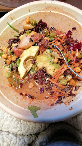 I had a vegan burrito, which was okay, but to be honest, I found it pretty bland. I would have liked it to be much more flavorful and with more of the main filling, not just beans and rice. I could barely taste the salsa either. I don’t quite get the hype and the long lines in front of the stand. It's not wow, but it's...