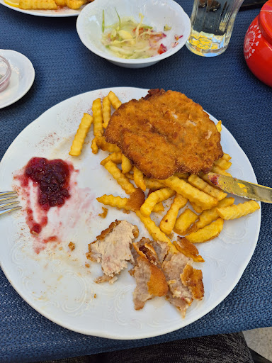 Mein Putenschnitzel fiel komplett auseinander. Die Panier war so lose, als ich ein Stück abgeschnitten habe, fiel der Rest von beiden Seiten am ganzen Schnitzerl runter. Mit mehreren unkaubaren "Flaxn" versehen und eine schleimige, wässrige Schicht am Fleisch. Das geht gar nicht. Schon gar nicht bei der teureren Pute... Bei meinem Kollegen wars dagegen ok. Keine Ahnung was da passiert ist. Wurde auf die ganzen zerkauten "Flaxn" am Tellerrand nichtmal angesprochen, man traute sich auch nicht zu fragen wie es...