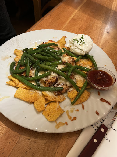 the lady serving us was extremely nice, but the food was terrible for a restaurant that is in the middle of the city with a 4.6 score. as warned at 8:30 the waiting time for the food was over an hour but I waited for nothing. I ordered chicken wings that on their website looked fried in corn flakes but when the dish arrived they were greasy, very spicy chicken wings with oversalted fries. those were replaced with some chicken sticks that tasted very poorly as well as you could taste day old oil in them and that's about it. the appel strudel was mediocre and extremely warm. the salads were good, and the first round of drinks (warmish beer) and the chicken sticks were on them because the food was not what it was on the website. however as appreciated the discount was, i wanted nothing more but...