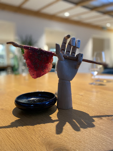Das Lokal ist sehr geschmackvoll eingerichtet und wir wurden in einer Art Wintergarten an einem schönen runden Tisch platziert. Bei der Speisenauswahl - wir wählten alle das 6-Gänge-Menü - wies ich nochmals darauf hin, dass bitte berücksichtigt werden muss, dass ich keinen rohen Fisch/Fleisch/Rohmilch essen kann.