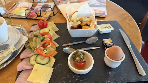 Read moreEigentlich eine 5 Sterne Bewertung verdient: Das Frühstück ist top, seit kurzem gibt es eine neue, überarbeitete Frühstückskarte. Die Speisen werden sehr attraktiv angerichtet, der Orangensaft kommt in kleinen dekorativen Karaffen, die Frische der Speisen ist unschlagbar und vor allem das Gebäck sucht bei der Qualität seinesgleichen- hochwertiger geht es nicht! Jetzt zum großen ABER: In diesem Lokal ist leider das Rauchen immer noch Gang und Gäbe :-( Der Raucherbereich ist zwar abgetrennt, die Türe steht aber so gut wie immer offen, so dass eine starke Geruchsbelästigung für die ganze Familie entsteht. Nicht auszuhalten. Auch die Kaffeemaschinen für die Servicemitarbeiter stehen im Raucherbereich. Leider deshalb 2 Sterne Abzug.. Sonst sofort gut und gerne 5 Sterne!! Bitte an den Nichtraucherschutz, an Familien, Kinder und...