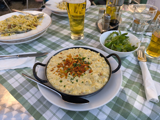 My family & I've eaten at the Goldener Hirsch (Golden Deer), the food is fantastic, I really enjoyed their Calzone, and will in the future too, & another of my relatives had their goats cheese pizza, which she thoroughly enjoyed.