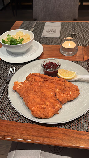 Als Hauptgericht wollte ich ursprĂŒnglich das Wiener Schnitzel bestellen. Eine Dame am anderen Nebentisch hatte wohl die selbe Idee und das Schnitzel just in dem Moment erhalten, als ich darĂŒber nachdachte. Aufgrund der homöopathischen Menge, die sie erhielt, habe ich mich dann doch nochmals umentschieden und auf etwas âHochpreisigeresâ (=gröĂere Portion) gesetzt, da es prinzipiell mein Wunsch war, das Lokal satt zu verlassen. Zufall oder nicht - hinzu kam dann, dass diese Dame die Beilage kurz darauf retour gehen lieĂ. BegrĂŒndung, wie wir lautstark mitbekommen haben - der Kartoffelsalat, welcher mit dem Schnitzel serviert wurde, schmeckte auĂerordentlich eigenartig!? Das Schnitzel blieb, die Wedges als Ersatz fĂŒr den Kartoffelsalat wurden - :-) 20 min spĂ€ter nachserviert.