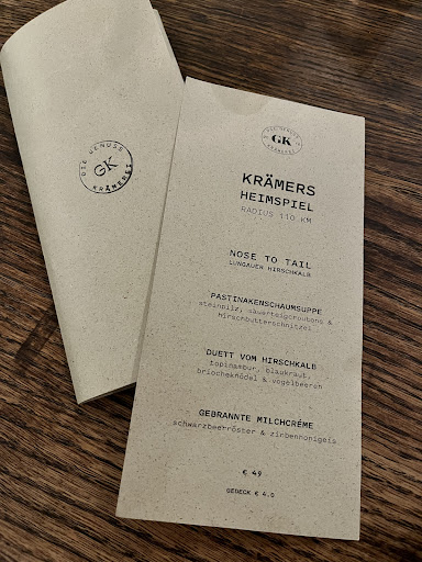 Read moreEin gelungener Abend durch und durch. Ich bewundere schon eine Weile das Treiben der Genusskrämerei auf Instagram und am Freitag war es dann so weit wir waren zu Gast. Bereits die Begrüßung war sehr freundlich man fühlte sich sofort wohl. Das Ambiente durchdacht bis ins Detail, Léger, Modern, Jung. Aaron und seine Mutter führen diesen Laden mit Herzblut. Schon beim Aperitif wurden wir umgarnt mit Wissen und Leidenschaft, hier ist jedes Getränk überlegt und man steht dahinter was man ins Glas bringt. Weinauswahl !! der Hammer!! . Gestartet wurde mit dem Gruß aus der Küche bereits hier zeigte sich die Kreativität und der rote Faden der Regionalität, der sich durch den Abend zog. Schlagwort, falsche Austern und Rehkebap. Durch das ganze Menü würden wir mit Hingabe geführt und mit perfekter Getränkebegleitung verwöhnt, während im Hintergrund seichter HipHop die Sinne umspielte. Jedes Gericht auf den Punkt gebracht ohne unnötiges TamTam auf das Produkt bezogen, so geht Gastronomie von Heute. Hut ab an die Küche, ich selbst habe ein Mal in diesem Metier gelernt und gearbeitet und am Tisch war einen Absoluter Profi dabei wir verneigen uns. Die Interpretation der Erinnerungen an die Halleinoma werde ich am Gaumen so schnell nicht vergessen. Wir bedanken uns, empfehlen weiter und sehen uns...