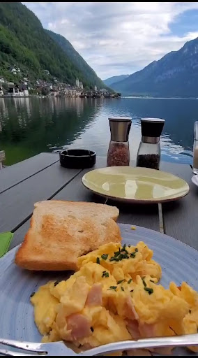 In Hallstatt which is a captive Community by a beautiful Lake there are a finite number of restaurants. Guests are held captive only by those choices. And there are some very unappetizing choices to be sure. You have to be diligent when choosing restaurants by a beautiful mountain tourist destination situated alongside of a beautiful Lake. Rule of thumb: restaurants with the best views and locations have the worst food. Halstead is no exception. Let's talk about breakfast: the Sea Cafe is an exception to the rule. The outside patio is literally on the lake with an absolute unobstructed gorgeous view. The Hausbrandt coffee is exceptional, roasted in Italy to their standards. Steaming method is also exceptional for the foam is better than I've ever had on any cappuccino-- and this was in a latte.