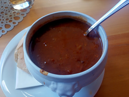 The views and surroundings are wonderful from the terrace. Ate here on a Saturday, where the local brass band march down the street and into the small building to play in the town square, this happens every Saturday, right across from the restaurant. Great experience to watch and listen to the band whilst enjoying excellent food, the goulash soup and knödel are highly recommended. Service could be a bit slow at times, due to the restaurant being very busy, it is definitely a good idea to reserve a...