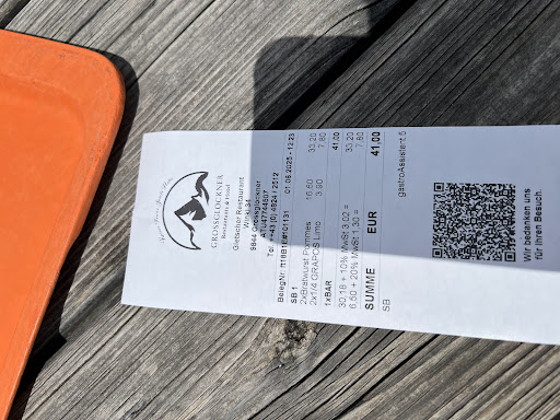 The view towards the glacier and the Grossglockner is amazing. It's self service, we got coffee and cakes. The coffee is made by a machine so nothing special but ok. The cakes were good. Prices are a bit high but this is to be expected. We had the option to pay cash or with a card but on a different cashier. The cashiers have to deal with hundreds of people everyday, there was always a line every time we have been there, so they are indeed stressed and a bit pushy, but they are trying to...