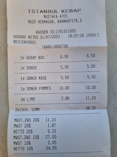 The place itself is alright, like any kebab place. The food, well, if you had a real döner Kebap, that's not fully what you get. There's either durum, or a burger patty with kebap meat and some lettuce and tomatoes with ketchup and onions. It's a snack, but would I call it Kebap, not sure. So the food is fresh and taste good, but not what I expected. The service is also ok, but it...
