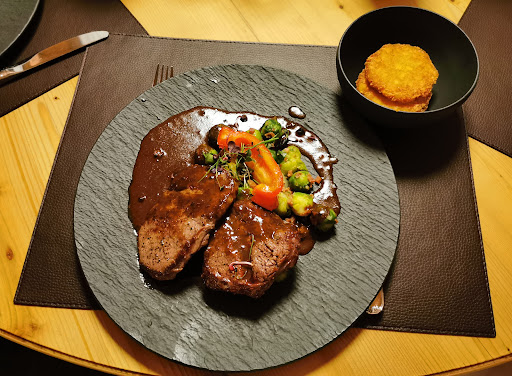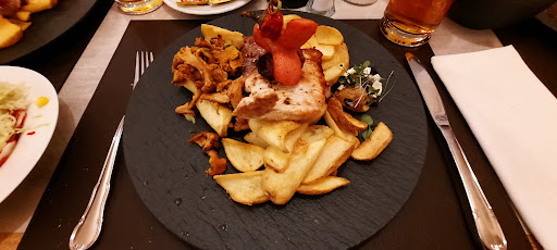 Read moreDe hotels in toeristenplaatsen in Oostenrijk zijn groot. U kent ze wel. Veel geraniums aan de balkons. Dit Gasthof is groter dan groot. Luxe uitstraling. Zwembad, wellness etcetera. We arriveerden er per taxi. Een gratis service notabene. Vanaf de camping. We hadden moeten reserveren, zo bleek. Niet alleen het restaurant, maar diverse gezellige "Stuben" waren overvol. Gelukkig was er nog plaats in een kleine "Nebenstube". Zeer uitgebreide kaart. Prijzen iets hoger dan we in de afgelopen weken in restaurants aantroffen. Maar...de prijs- kwaliteitverhouding was meer dan in orde. Tafellinnen, servies e.d. Ik vind het belangrijke sfeermakers. De wildschotel: aanrader. Een grillteller (een paar keer eerder besteld in etablissementen) was net iets beter van kwaliteit dan eerder verorberd. Tot slot: ik dreigde te verdwalen op de terugweg...