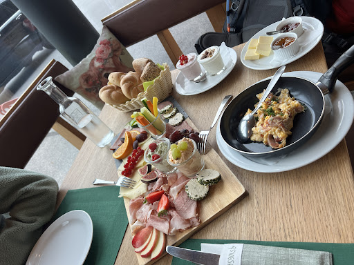 Wir waren zum Frühstücken da und es war hervorragend. Platte mit regionaler Wurst und Käse, Müsli, Birchermüsli, Joghurt, frisch aufgeschnittenes Gemüse, Marmelade, Kaffee, Saft und frisch zubereitetes - sehr leckeres - Rührei. Riesenportionen - wir haben es nicht geschafft, obwohl wir wirklich gute Esser sind.