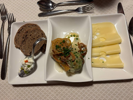 Read moreEverything perfect!!! Davvero tutto perfetto. Siamo capitati qui dietro consiglio del nostro albergatore dove stiamo soggiornando. Locale tipico del posto poco fuori dal centro città e forse anche per questo molto più tipico, conveniente e fuori dai percorsi turistici. Personale super disponibile. Siamo arrivati che c’era il locale strapieno e si sono fatti tutti in 4 per trovarci un tavolo per 2. Avremmo voluto dirgli che potevamo aspettare ma non ce ne hanno neppure dato la possibilità. Servizio velocissimo e piatti ottimi e super abbondanti. Abbiamo preso una zuppa alle cipolle davvero buonissima e 2 piatti dei loro classici spätzle con formaggio fuso e cipolla croccante servito in tegame di ghisa caldissimo che manteneva il calore (voto 10) accompagnati da insalata di cappuccio buonissima…certo se fosse stato un clima più freddo li avremmo apprezzati di più ma non pensavamo di trovare questo caldo a fine ottobre. Metà spätzle non siamo riusciti a finirli e li abbiamo portati a casa. Da bere 2 birre da 0,5 il tutto per €35,00…in Italia avremmo pagato almeno un 20/30% in più. Siamo rimasti super soddisfatti. Cucina aperta fino alle 21:30 e menù in italiano....