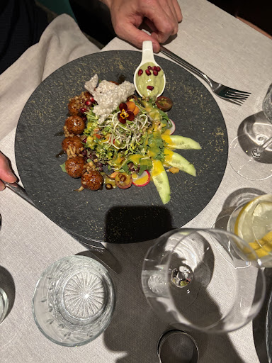 Read moreDas Essen hat mich sehr positiv überrascht, die Küche somit jedenfalls empfehlenswert. Auch das Ambiente im Restaurant war gut, auch die Tische waren schön eingedeckt. Im Service gibt es allerdings aus meiner Sicht Mängel. Den Aperitif nahmen wir aufgrund des schönen Wetters vor der Tür. Das war sehr angenehm. Die junge Frau, die uns da bediente war sehr höflich und aufmerksam, die Getränkeauswahl ebenfalls gut. Beim Essen allerdings hatten wir eine andere junge Frau als Servicekraft. Diese hatte von ihrem Job keine Ahnung. Ich gehe davon aus, dass es eine klassische studentische Aushilfskraft war. Aufgrund des Personalmangel habe ich dafür natürlich Verständnis. Dieses Verständnis hört allerdings an der Stelle auf, an der mir eine Flasche Wein viel zu warm serviert wird, mir am Tisch die Problematik erklärt wird, dass man zu wenig Kühlfläche hat und dies auch mehrmals schon bei der Geschäftsführung angemerkt hatte. Ich bat die Servicekraft, ihre betriebsinternen Probleme nicht mit mir zu teilen. Schließlich war ich mit Freunden auf einen schönen Abend eingestellt. In weiterer Folge fand man einen Weinkühler, den man mit Eiswürfel füllte und den Wein kalt stellte. Nachdem wir uns eine bessere Flasche gegönnt hatten, fand ich auch den Vorschlag, Eiswürfel in den Wein zu geben, um zwischenzeitlich schon etwas trinken zu können, sehr befremdlich. Auf meine Frage, warum man eine Weißweinflasche bei Zimmertemperatur überhaupt am Tisch öffnet, bekam ich als Antwort, dass sich die Servicekraft erhoffte, dass wir uns mit Wein eventuell nicht auskannten. Das war schon ne Nummer. Ich gab ihr meinen Tipp, sowas nie mehr zu sagen, und noch besser auch nie mehr zu tun. Jedenfalls ist das der Grund, warum ich im Service leider nicht mehr Punkte vergeben kann. Eine Irritation hatte ich noch, da für mich die Qualität des Essens top war, die Tische überraschend schön eingedeckt waren war das Outfit der weiblichen Servicekräfte mit einem nach oben gekrempelten T-Shirt, das Bauch- und Rückfreiheit herstellte, eher unpassend. Aber das dürfte ein Konzept Bestandteil sein, der mich nicht überzeugt. Dennoch werde ich ein weiteres Mal aufgrund der Qualität der Speisen ein weiteres Mal bei Gelegenheit zum Essen kommen, um nicht nach einem Besuch bereits alle...