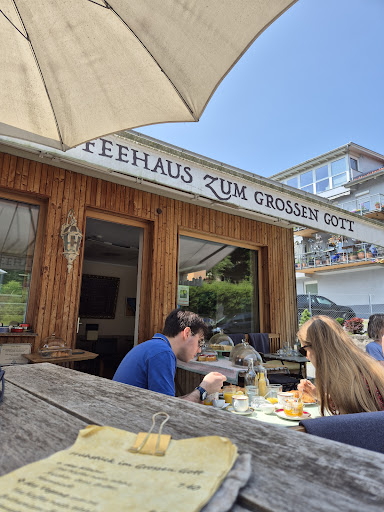 Nach meinem ersten Besuch im Café Großer Gott war ich mit gemischten Gefühlen erfüllt. Nachdem ich so viele positive Bewertung gelesen habe, musste ich mich selber davon überzeugen. Zuerst hatten wir uns raus gesetzt, aber die Atmosphäre und Entspanntheit wird durch die Lage direkt an der Straße zerstört. Daraufhin entschieden wir uns hineinzugehen. Die Inneneinrichtung ist sehr schön und lädt zum Verweilen ein, nur leider wurde man dort von einer Armee von Fliegen belästigt. Die Bedienung war freundlich, aber obwohl nicht viel los war hat es ewig gedauert bis ich mein Sandwich bekommen habe. Und als es da war, war es viel zu hart und hatte keinen schönen Crunch. Geschmacklich war es aber sehr lecker! Die Waffel war auch zu lange im Waffeleisen. Ohne das Vanilleeis, die Sahne und den Früchten wäre die Waffel furztrocken gewesen, geschmacklich aber super gut! Die Kuchen haben wir jetzt nicht probiert, aber die sind bestimmt super! Vielleicht...