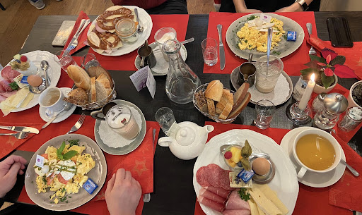 Wir haben uns die Bewertungen angesehen und haben uns auf den Besuch sehr gefreut, Wir bestellten ein Klassisches Hausfrühstück für 9,90€ da waren dann Wurst, Käse, 1 gekochtes Ei, ein Obstjogurt, 1 Stück Butter klein ca. 10g und 3 verschiedene Konfitüren in Gläsern dabei. Für den Kaffee muss man extra zahlen und bekommt dann 1 kleine Tasse die 2,80€ kostet. Nun wer mit einem ST Butter genug hat weiß ich zwar nicht aber bitte dann bestellt man noch mal 1 ST nach und zahlt dafür 0,80€ das Ganze dann mal 2, wenn man zu zweit hin geht. Der Service, wenn man das so bezeichnen kann war entweder nicht vom Fach oder Desinteressiert haben auf das Frühstück mindestens 25 min gewartet, ein Frühstücks Ei dauert vielleicht 5 min und der Rest wird sicher schon grob vorbereitet sein also was kann da so lange Dauern oder hohlen die das Gericht von einer Hotelküche? Wir gehen regelmäßig Frühstücken und nur mal so zum Vergleich Ich habe mir einmal ein Frühstück in einem 5 Sterne + Hotel gegönnt und habe dann mit so viel Kaffee wie man will und einem sehr großzügigen Büfett gerade mal 15 € bezahlt. Hätten ich hier meine normalen 2 Tassen Kaffee getrunken dann hätte ich noch mehr bezahlt als damals im Hotel. Das heißt das Ganze Frühstück für zwei Personen kommt dann auf 26,20€ was ich schon als relative viel empfinde. Oder ein anderes Beispiel in der Bäckerei Ruetz nimmt man sich ein Frühstück Verwöhn-Frühstück mit Kaffee, Tee oder Kakao so viel Sie möchten, zwei ofenfrischen Kleingebäcken nach Wahl, drei Aufstrichen zum selbst Auswählen (Butter, Marmelade, Nutella oder Honig), einer Portion Wurst und Käse und einem Kaltgetränk Ihrer Wahl und das dann für 10,50€. Klingen beide Angebote nicht...