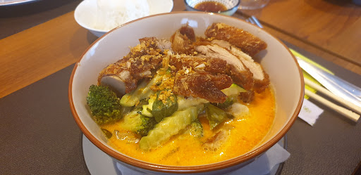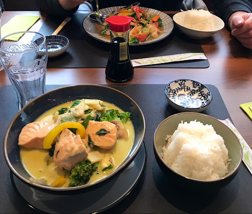 The food tasted freshly prepared (i.e. no frozen vegetables/frozen salmon or meat), the waiter was friendly and I would definitely recommend to eat there. We went on a Thursday night and it looked like they already had practically the whole place reserved (albeit the place is a little small) so I would say make a reservation beforehand. Overall good food, the only thing I would say is that this restaurant is a mix of Japanese and Thai and if you were born in Japan or Thailand or are very into Japanese and Thai food, the “authenticity” of the food might not be what you’re use to for a certain dish (i.e. certain spices or ingredients in making the food; my dish was the Salmon Curry and it was spicy, which is difficult to find here and tasted authentic, but the Japanese dish my friend had tasted good but he says it didn’t taste like home for him) BUT it is still a wonderful restaurant with delicious food and great service so I give it 5 stars :) Also, normal menu is a little pricier than...