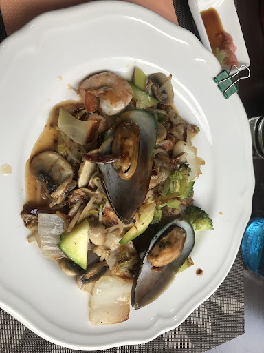 Read moreIst eher zum lachen.. !! Dringend Tipps holen !! Seit Jahren essen wir hin und wieder in diesem Restaurant wegen der tollen Lage und jeder Besuch ist ein kleines bisschen schlechter als der vorherige aber das war jetzt definitiv das letzte Mal. Ich war mit meinen Kindern an einem Samstag dort (ca. 12 Uhr noch was.. ) ich stand wirklich über einer halben Stunde vor einem halbleerem Buffet (ich meine das zum grillen, nicht das mit den fertigen Gerichten). Es gab keine einzige Fleischsorte und nur 2 Sorten Fisch, keine Meeresfrüchte.. Eine Kellnerin polierte in aller Ruhe Gläser, sah sich das Buffet an, ging in die Küche und kam wieder mit 10 Garnelen raus, die sich ein Herr natürlich alle auf den Teller packte (Warum auch nicht? Er zahlt schließlich dafür) Ich dachte gut, jetzt wird wenigstens etwas aufgefüllt. Zu früh gefreut, sie widmete sich wieder ganz dem Gläser polieren.. weitere 10 Min später wurden wir schon ungeduldig. Wir wollten nicht einfach "irgendwas" essen was da war, dafür sind wir nicht gekommen. Ich ging zu ihr rüber und fragte sie, ob sie nicht irgendwen bitten könnte das Buffet aufzufüllen. Sie fragte mich was ich denn genau haben möchte. Ich sagte ihr, nichts konkretes, eine Auswahl wäre nett. Daraufhin reagierte sie sehr genervt, ob ich nicht sehen würde, wie viel los sei!? Klar, es war Samstag aber das Restaurant (bestimmt wegen dem schönen Wetter) maximal nur halb voll. Ich sah mich um und musste etwas lachen, was bestimmt nicht die Reaktion war, die sie von mir erwartete, sie ging wieder genervt in die Küche und kam ewig nicht raus. Durch die Warterei verbrachten wir schon viel mehr Zeit im Restaurant als wir eigentlich vor hatten.. Wir nahmen uns nur noch etwas von Dessert und gingen.