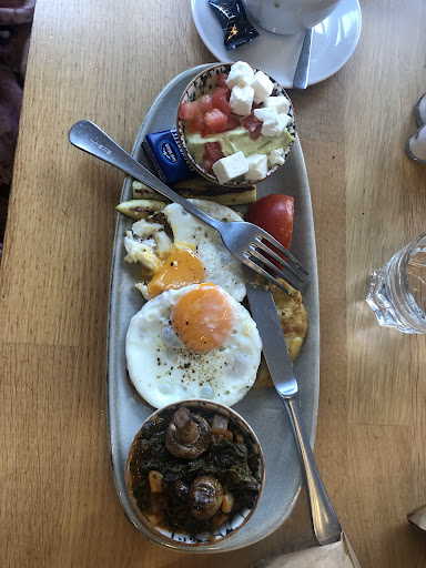 The atmosphere is warm and welcoming, with attentive staff and a beautiful interior that also offers outdoor seating. The breakfast menu is varied, including vegetarian options, and the food quality lived up to expectations. Prices are slightly above average, but the taste and presentation make it worthwhile.