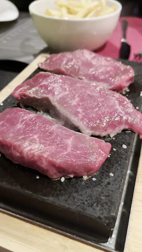 Read moreDieses Restaurant kann man überhaupt nicht empfehlen. Einer der beiden Kellner ist zumindest bemüht, was auch daran erkennbar ist das er sich dauernd den Schweiß aus dem Gesicht wäscht aber das Team scheint komplett überfordert. Lange Wartezeiten, generell schlechter Service. In unserem Fall bedeutete es, das wir zwei Stunden auf die Hauptspeise warten mussten, eine Person hat ihr Essen erst bekommen als alle fertig waren, und zwar nach 2,5 Stunden. Die Qualität des Essen lässt ebenfalls sehr zu wünschen übrig. Wir hatten eine tapas Platte zur Vorspeise, welche völlig überteuert ist und danach noch zwei verschiedene Steaks, einmal vom Grill und einmal vom hot Stone. Ich kann nicht sagen welches schlechter war, denn sie waren beide wirklich unterirdisch. Das rib eye viel zu heiß gegrillt, sodass es außen schwarz war und ungenießbar und das Rumpsteak war so dermaßen dünn geschnitten, dass es eher an ein zerteiltes Minutensteak erinnert hat. Und das alles auch noch zu einem wirklich stolzen Preis. Alles in allem würden wir dort nie wieder zum Essen hingehen. Vielleicht verläuft sich ja der ein oder andere nochmal dorthin auf dem Weg in die strip bar mit der sich ein Eingang...