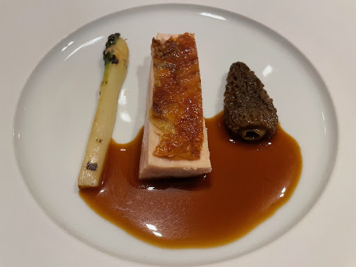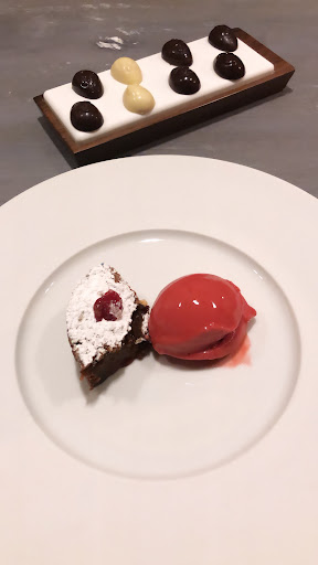 Read moreDisappointing, non-hygienic, pompous and overpriced. 4 people with food poisoning, dirty silverware, condescending server, sneaky pricing and boring food - this is a quick summary of our experience. I gave two stars out of respect to the hotel, and the Festive Atmosphere that was created in front. Purely for the restaurant, it will be one star. This is definitely NOT a Michelin star level place. It was not difficult to make reservation. We had large group with kids. Hotel told us about chefs 7 course wine pairing tasting menu for adults and separate menu for the kids. First Surprise was dirty and greasy silverware. They did not have food for children and they ordered their food from the next door. Kids ordered five steaks, and all of them were cold, chewy and tasteless. We were surprised that kids did not want to eat them but once we tried them, we agreed. Foie Gras pate was very good. It went very well with Riesling, which we loved. Picture is included below. That was the only positive thing from the evening. The rest of the dishes were seafood and one chicken. No meat. The chef is a fan of frothy base, making most of the dishes taste and look pretty much the same. There was no presentation of food either. We had to constantly ask what we’re eating because it was not really clear. One of the dishes was served on a spoon, which was placed straight on the table right after it was wiped with a rag. That was a bit gross, and definitely not hygienic. I would expect at least a clean napkin, or a small plate, knowing that the spoon most likely wind in the mouth. If I were to guess, that would be a potential source for food poisoning we experienced. Fortunately, most of unfortunates were doctors and had antibiotics available. It took about 2 days. Sommelier was pleasant and funny but somehow he forgot to tell us that Champagne in the beginning and the drinks afterwards were not included. Because we had a tasting Event, and there were no menus, would expect any extras to be presented. The cost of menu was about €300 per adult and €73 per child. In addition to that, they charged us €300 for champagne and €20 per after drink with total about €450 per adult. I would like to mention one more thing. The waitress was wearing a white glove on one hand, which is fine, except I saw her coughing into it in the back galley. Also every time she served food and lean over, her hair would end up on your face, not just close, but actually on your face. I think wearing ponytail would be preferable and definitely more hygienic.