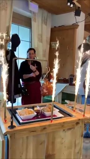 Ein rundum gelungenes Erlebnis! Wir hatten die Haxe, die nicht nur geschmacklich ein echtes Highlight war, sondern auch spektakulär mit einem kleinen Feuerwerk serviert wurde â ein echter Hingucker! Auch das Dessert, eine gebackene Eiskugel, kam ebenfalls mit Feuerwerk an den Tisch und war geschmacklich einfach exzellent.