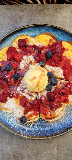 This place tries to attract a younger public with the lounge seats, music and young waitresses. We had some simple meals: chicken burgers and chicken nuggets, which were fine. I asked for a specific wine by the glass, and being a wine lover asked to take a picture of the bottle. It appeared to be a completely different wine, that wasn't even on the list. When the bill came, the burgers also appeared to be more expensive than in the menu, so we feel ripped off. This was our last visit...