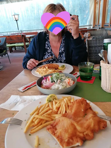 Beim 2. Besuch aßen wir Zanderfilet mit Petersilienkartoffeln und Wienerschnitzel mit Pommes. Dazu gemischter Salat. Die Speisen bewegen sich auf Imbiss Niveau, angerichtet auf Steingutgeschirr. Sieht ansehnlicher aus, schmeckt aber wie im Imbiss. Für einen Campingplatz gerade noch ok mit viel Luft nach oben. Wir haben auf Campingplätzen deutlich besser zu gleichen...