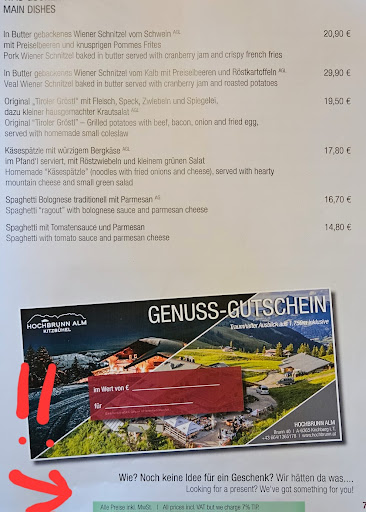 Wer es vergleichen will, bitte zur Winnaberg Alm schauen in Westerndorf. Traumhafte Bedienung, netter Chef, der auch mit den Gästen was trinkt und sie einlädt und somit den weiteren Konsum ankurbelt. Echte Gastwirte halt!