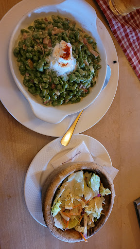 Konečne sme našli na tretí deň miesto, kde úžasne varia. Domáce špeciality. Dali sme si kässespetzle a spinachspetzle, mňam, mňam, mňam, nebíčko v papulke. K tomu zeleninový šalát a bonus rozumné ceny, i keď keby bolo treba, rád by som priplatil. Takto sa má viesť reštaurácia, úžasná kuchyňa, milá obsluha, dechberúci výhľad, skvelá vnútorná výzdoba. Vždy, keď pôjdem okolo, tu sa zastavím, lebo tu naozaj varia a varia s láskou. Moc ďakujeme.