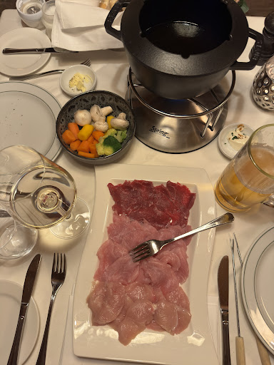 A rather disappointing restaurant. Absolutely ordinary food at highly inflated prices. Yes, it’s cozy and beautiful, but that’s the norm here—this is Austria. The service was good, but the same can’t be said for the food. We ordered a meat fondue, which, as it turned out, had to be cooked in soup rather than cheese. For €100, we got four types of meat and a few sauces. Whether we cooked the meat incorrectly out of ignorance or the quality just wasn’t great, both my wife and I had stomach issues all night. A final bill of €140 for one fondue for two, one glass of wine, and two beers—plus a night of stomach troubles—doesn’t make us...