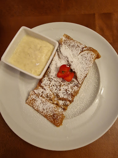 I finished with the strudel, which was excellent, but I forgot that it is usual to have the vanilla sauce cold here, instead of hot like it...