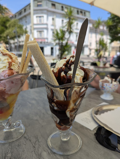 The seating is on the historic "alter Platz", directly behind the statue of the former empress of the König- and Kaiserreich that introduced the still active adiminstration and burocracy in Austria. In the Summer it is a great place to sit, sip your drink and look at the people...