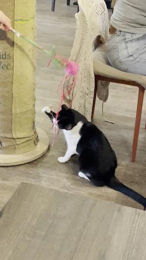 Read moreWe came to visit all the way from Ireland and the atmosphere is perfect: the music is relaxing, there are nine friendly cats, the coffee and cakes are tasty, the staff super friendly and taking time for a chat even though it was busy. Even the other guests that seemed to come regularly were friendly and chatting with us. It is highly recommended you make a reservation beforehand as the place is hugely popular and they had to turn away some guests due to being fully booked. We didn't stay long because someone else had already reserved our table, but we felt very welcomed by the staff and guests. I hope one day we'll be able...